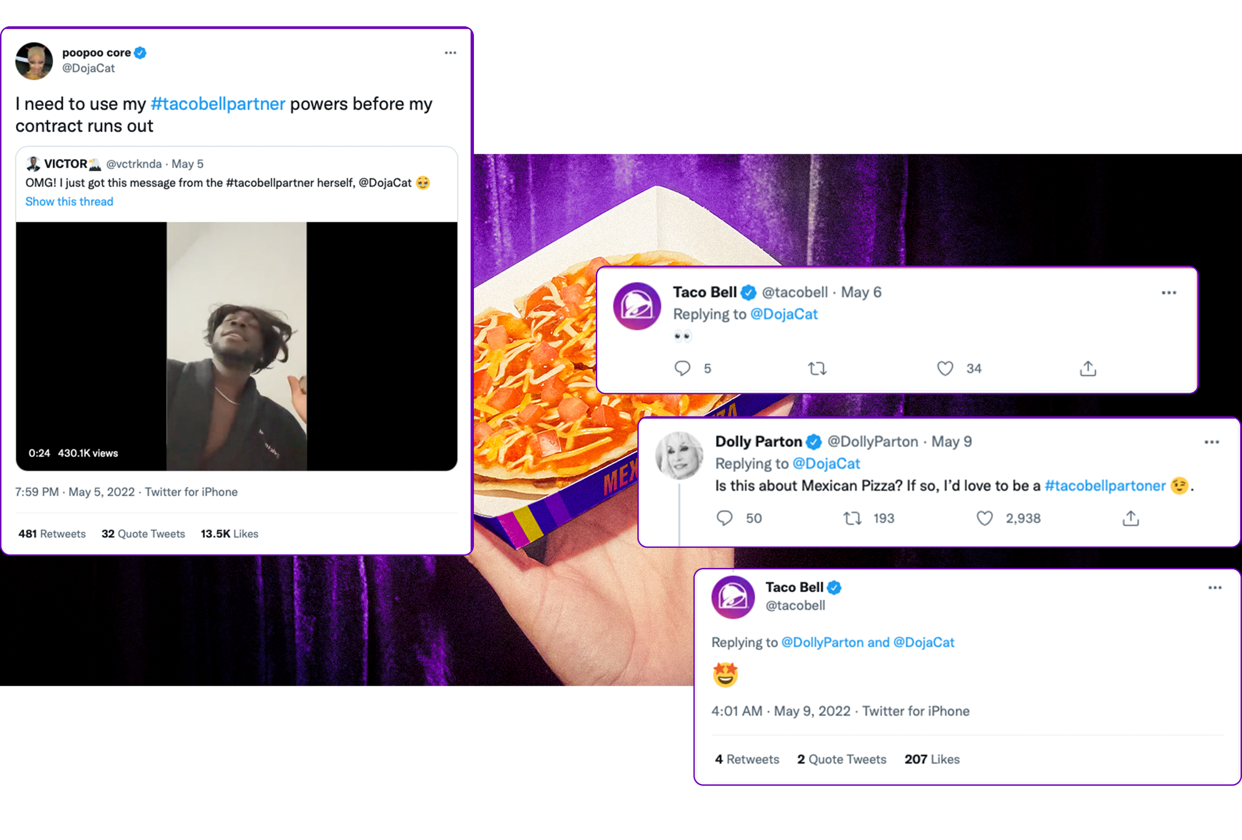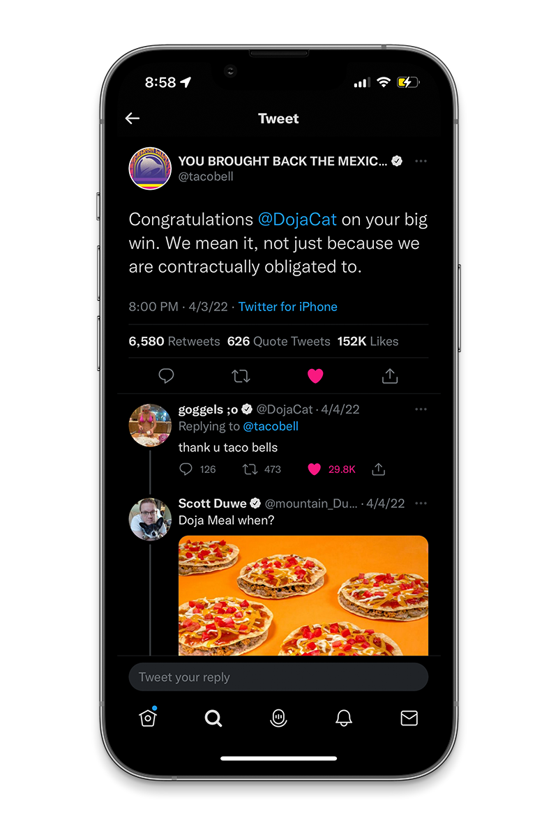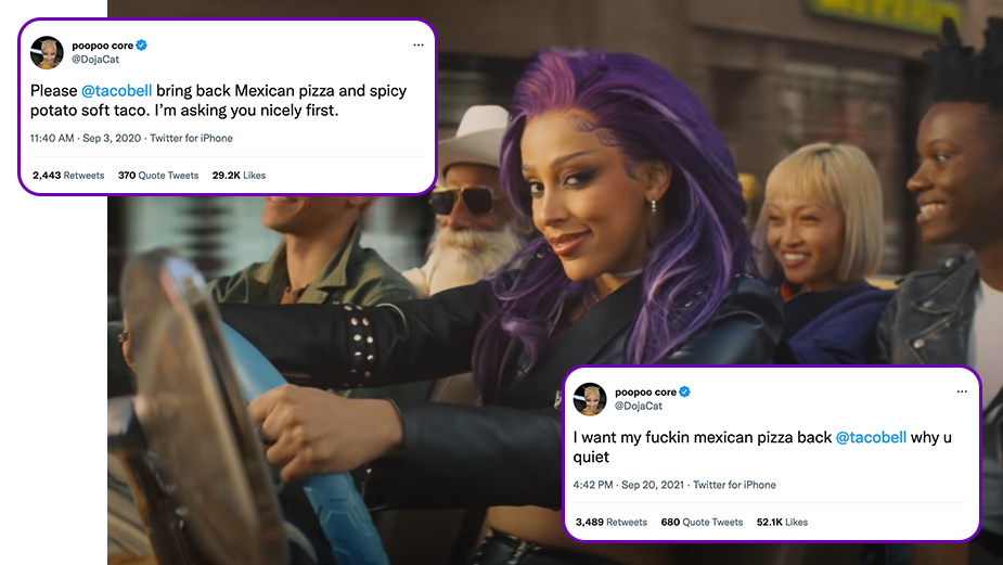The Mexican Pizza was discontinued and Doja Cat was not happy about it. So we worked with her in bringing it back.